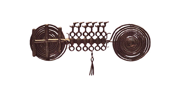 Fibula from Krumpa-Lutzkendorf. This cloak pin was found in a brown coal mine in Saxony-Anhalt/Germany. The pin shows a bird’s sun bark, which symbolizes the eternal solar arc; the sun is propelled across the sky by birds on a ship between sunrise and sunset. 1100-1000 BC.