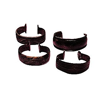 Omega-shaped bronze bracelets, found on a sacrificial site in Drouwen/Netherlands. The bracelets are of Dutch manufacture but inspired by Central European examples.