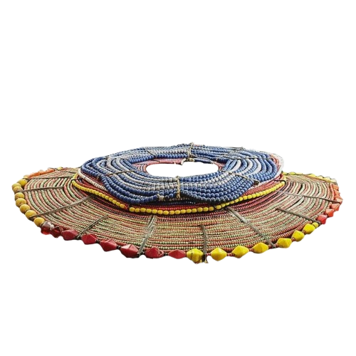 In this context, the collar necklace is inseparable from movement, sound, and performance. It participates in dance, ritual, and public gatherings. Its presence marks transformation. A young person becomes an adult. A woman becomes a bride. The collar does not merely signify this change. It helps bring it into being. The act of wearing becomes part of the ritual itself, reinforcing continuity between generations and anchoring identity within the group.