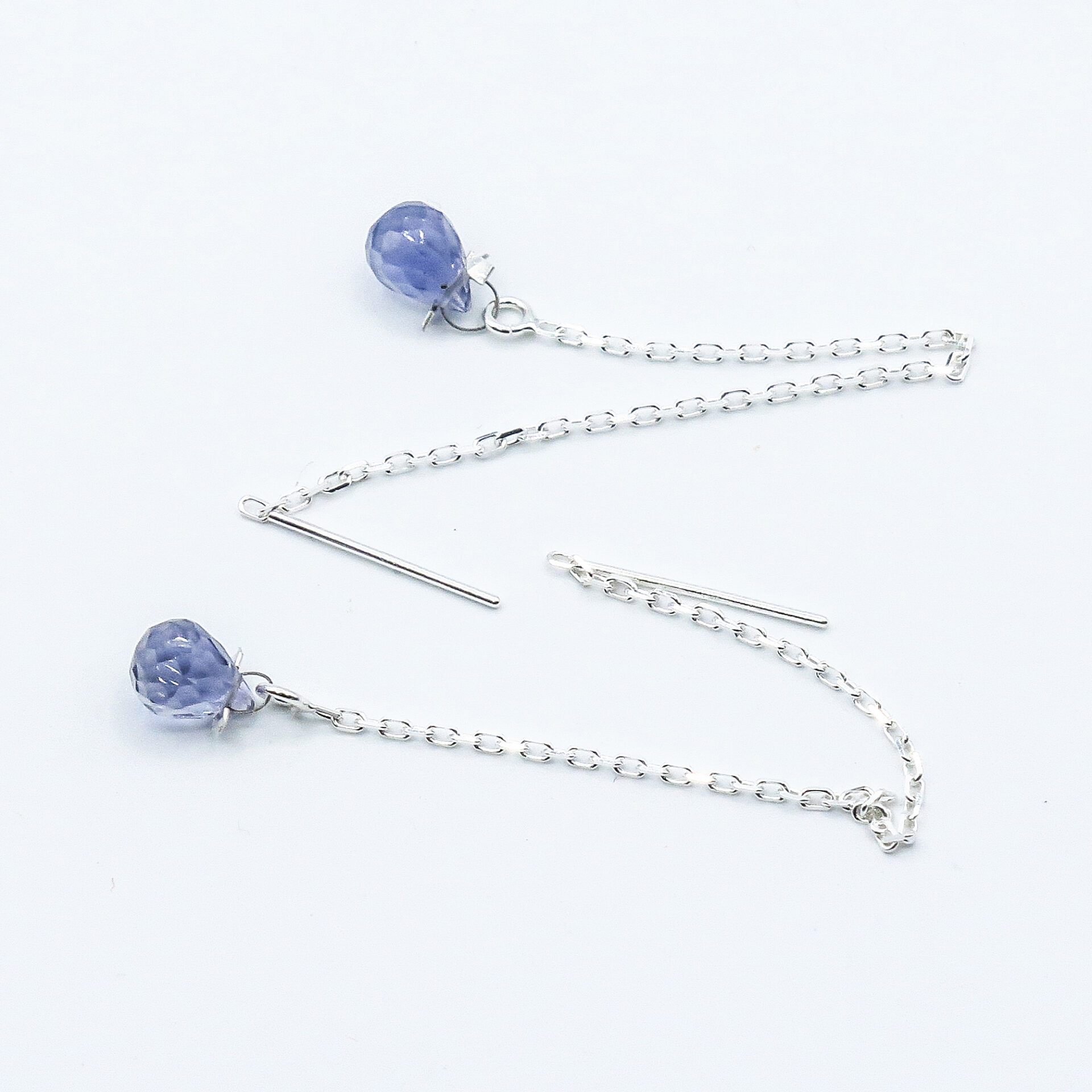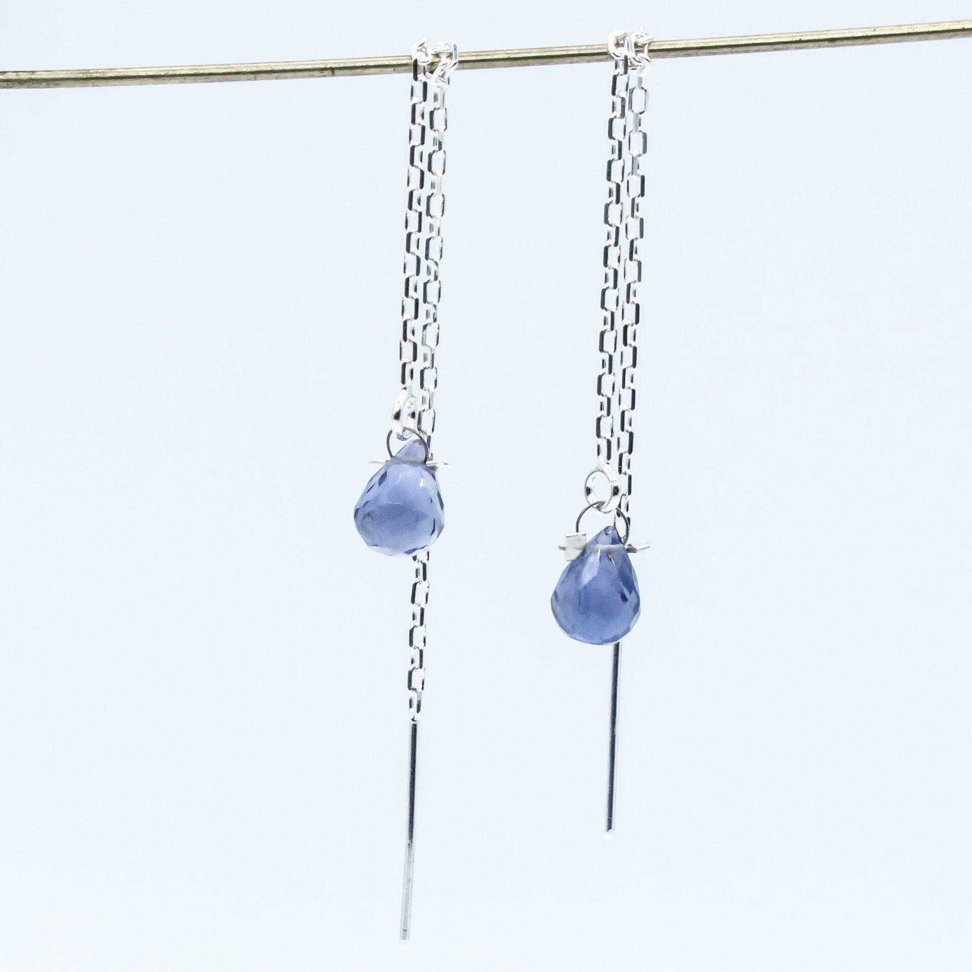 • These unique and exclusive blue quartz earrings are made of pull-through blue Hydra quartz and finished with sterling silver pull-through