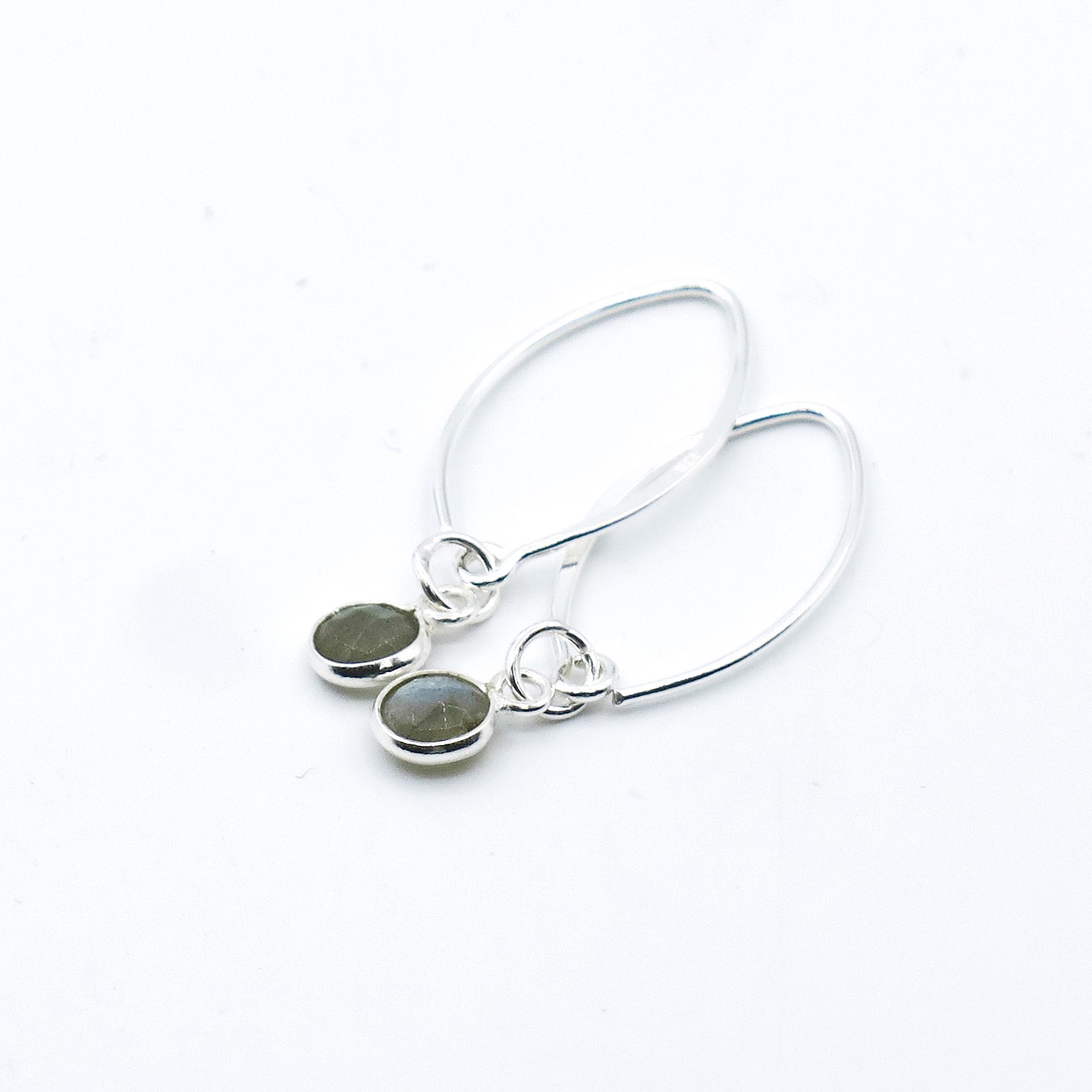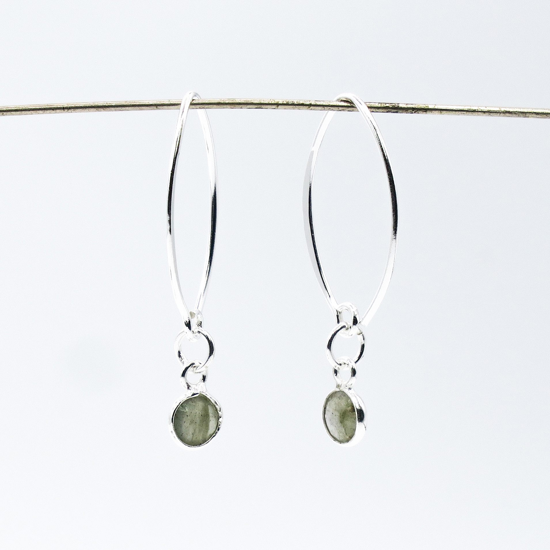 • These unique and exclusive silver Labradorite earrings are crafted from grey to light green Labradorite beads and finished with sterling silver ear hooks.